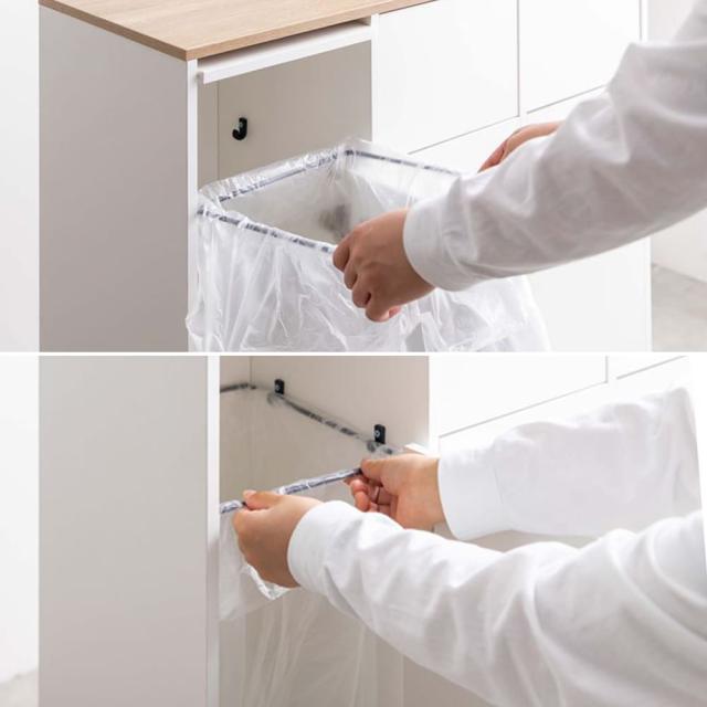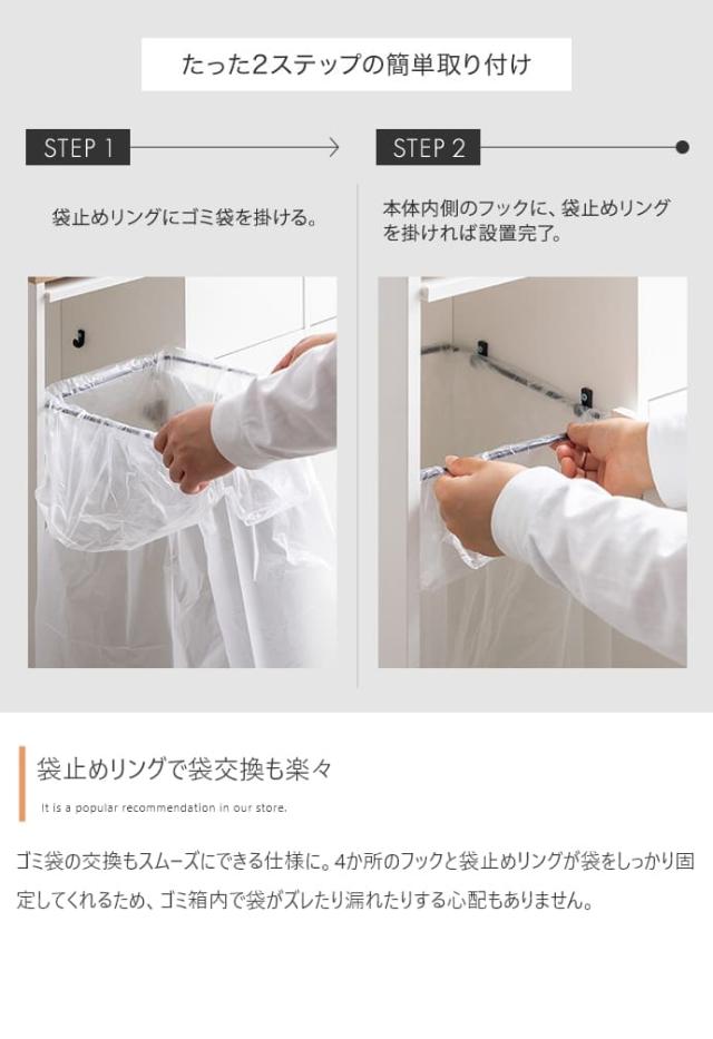 袋止めリング付きでゴミ袋のずれや外れを防ぎ、交換のストレスを軽減します。