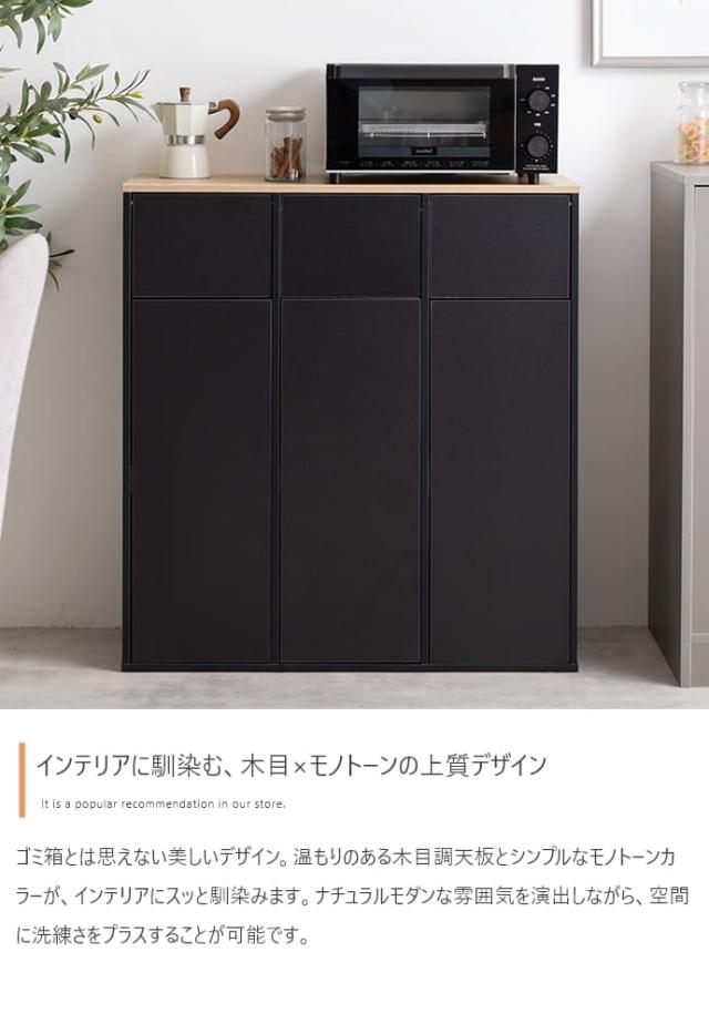 スタイリッシュなデザインと機能性を兼ね備えた3連ゴミ箱。