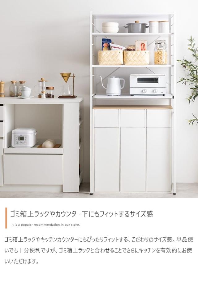 ゴミ箱上ラックやカウンター下にも収まりやすいスリムなサイズ設計。
