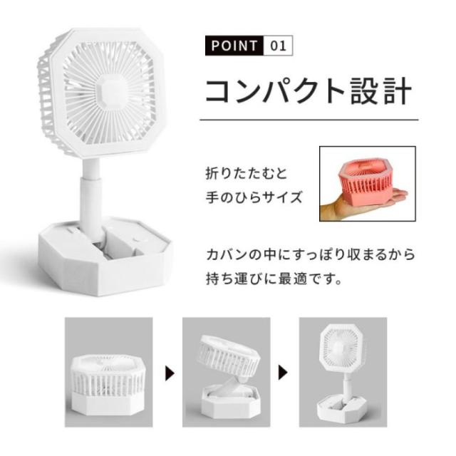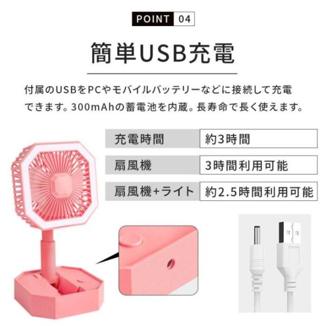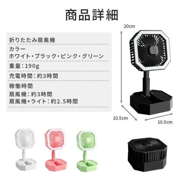 卓上扇風機 扇風機 折りたたみ コンパクト 小型 持ち運び ライト付き usb 静音 充電式 携帯 ハンディファン ポータブル オフィス アウトドア