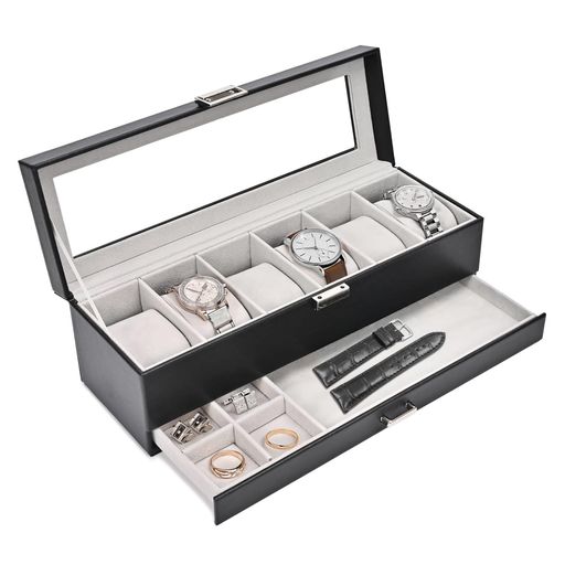 MOCAMORO 腕時計ケース 6本用 2段式 ウオッチボックス 男性 高級 時計コレクション 透明ガラス天板 ディスプレイ プレゼント