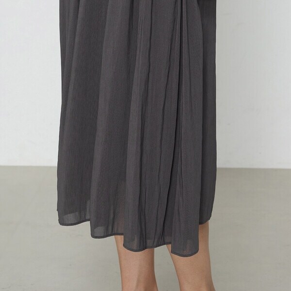 ローウエストで切り替えたシャーリングギャザーで動くと揺れる分量感をプラスしています。