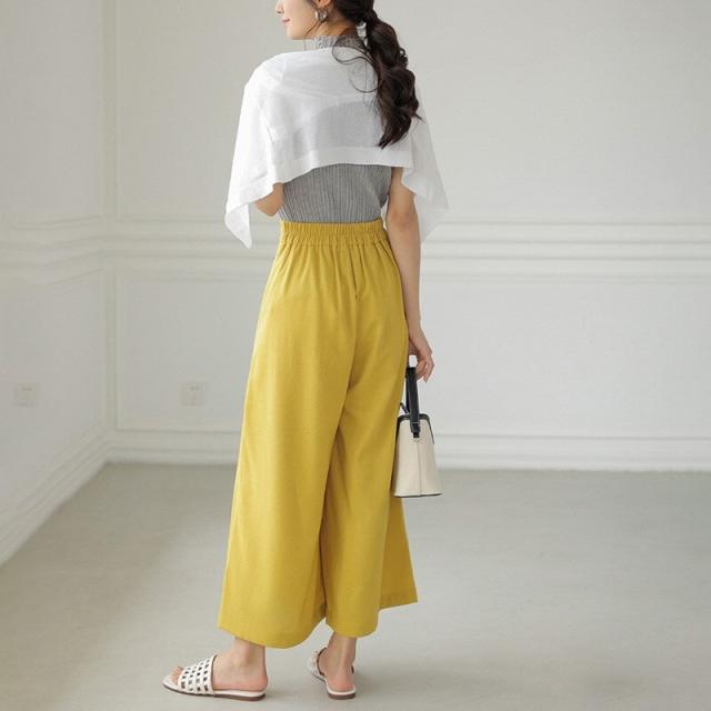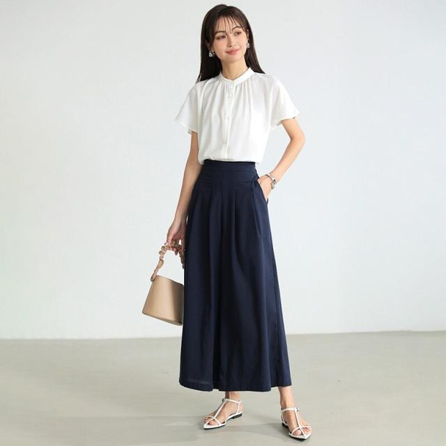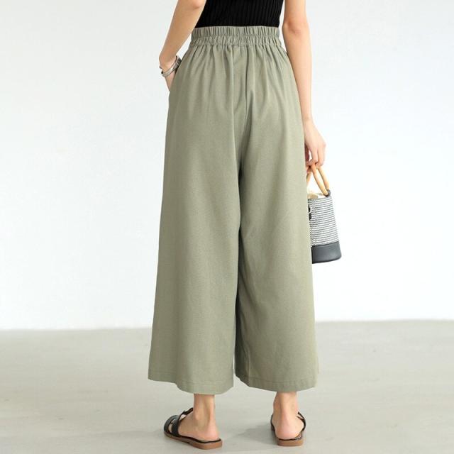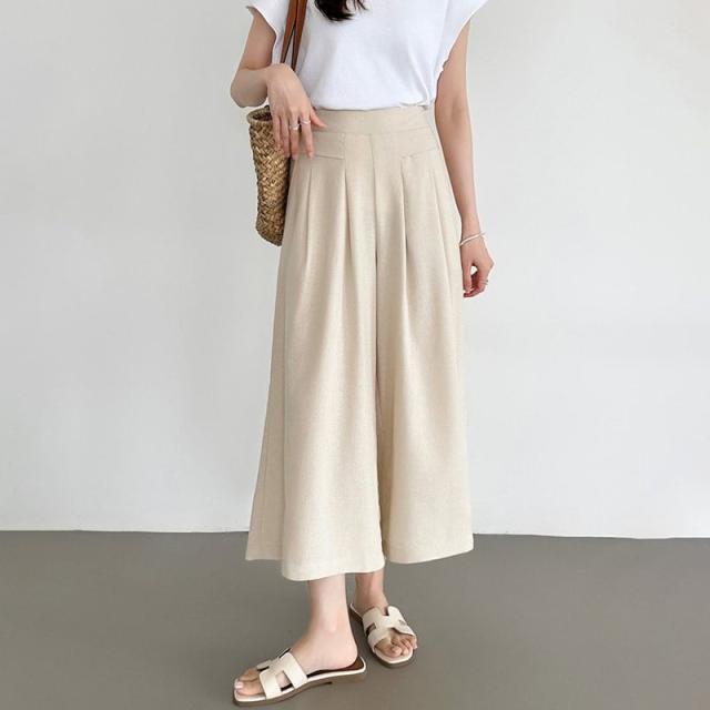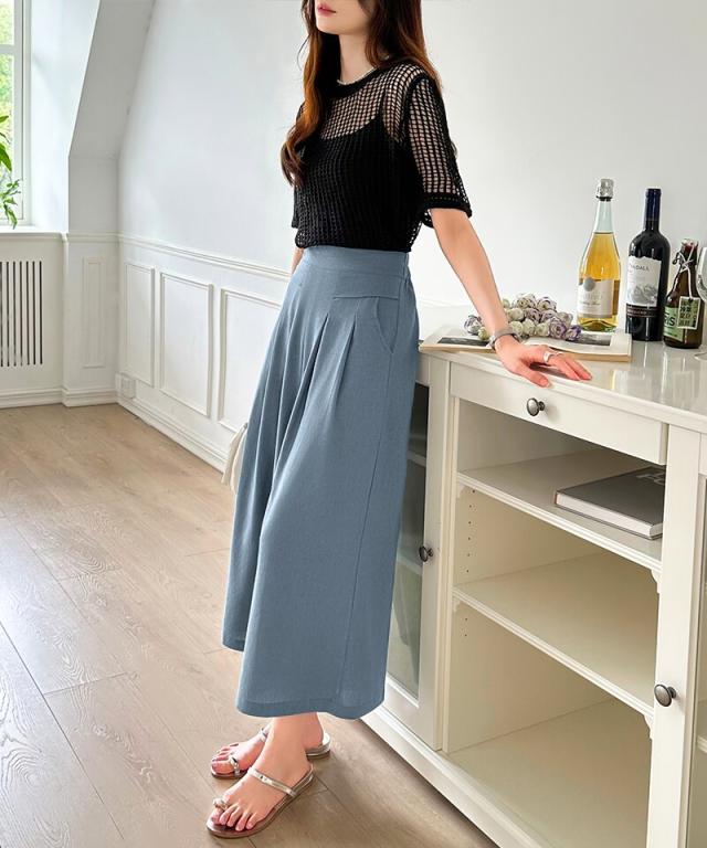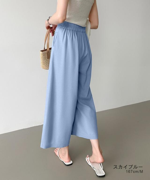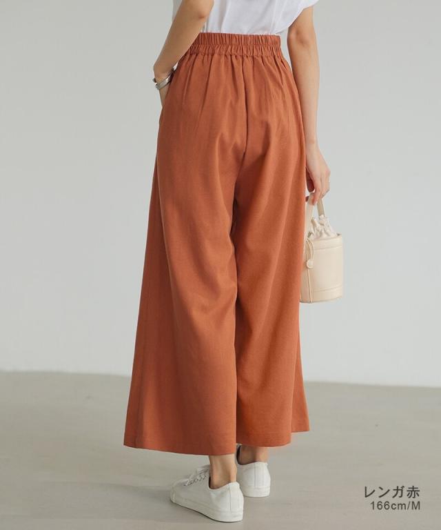 ワイドパンツ ガウチョパンツ リネンワイドパンツ パンツ スカーチョ レディース 体型カバー