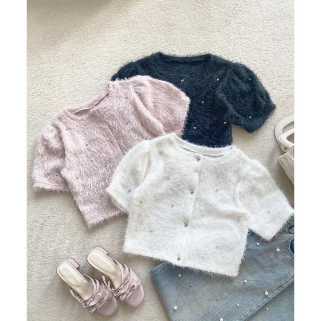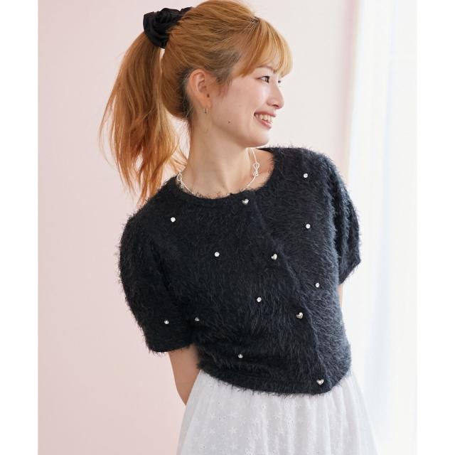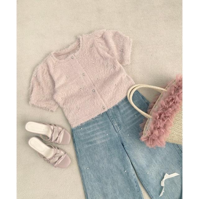 トレンドムードたっぷり!ビジューとふわふわをMIXしたロマンティックトップス