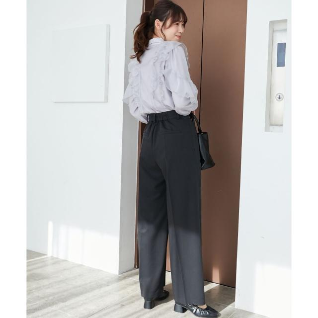 後ろゴム仕様で、イージーな履き心地ながら綺麗見えが叶うスラックス。