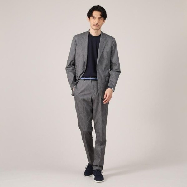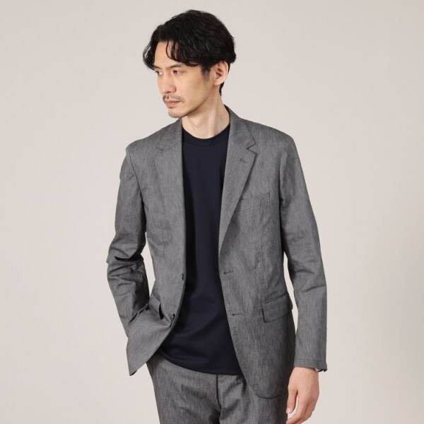 先染めを使用したシャンブレーの深みのある絶妙な色合いとリネンをブレンドした春夏調の爽やかな印象の素材が立体感のある上品な仕上がりに。