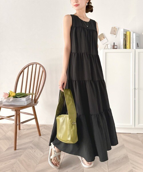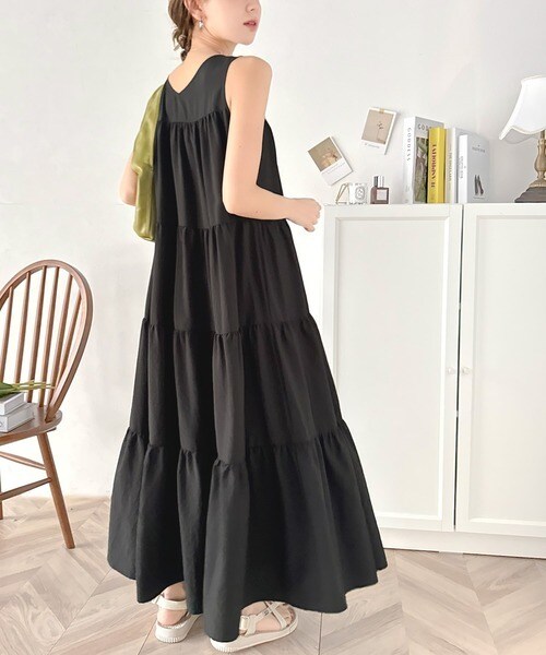 洗練された大人フェミニン。 前後2WAY4段ティアードワンピース(ロング丈)