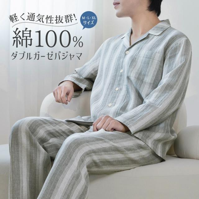 パジャマ 上下セット ダブルガーゼ ガーゼパジャマ メンズ 男 綿100% 長袖 春 前開き ダブルガーゼ パジャマ 寝巻き ルームウェア