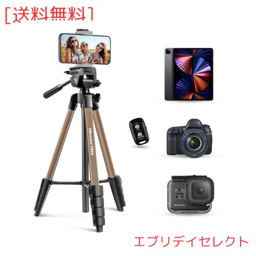 UBeesize三脚 スマホ 三脚/タブレット三脚 163cm三脚 Bluetoothリモコン タブレット/スマホクリップ式 ビデオカメラ 一眼フレ 3WAY雲台