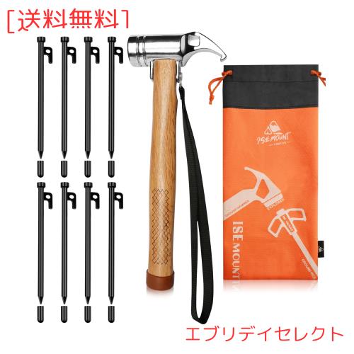 鍛造ペグ 30cm 8本 キャンプ ペグ テント ペグ ソリッドステーク S45Cスチールペグ 電着塗装 収納袋&キャップ付き 砂利 硬い土 砂浜等対
