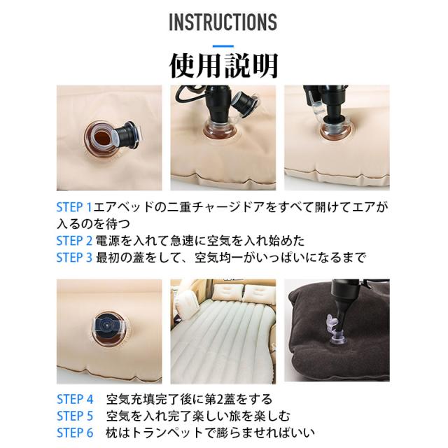 ・アウトドアも長旅も快適に!必要な時にトランクからさっと取り出して空気を入れるだけで後部座席が快適なベットに早変わり!