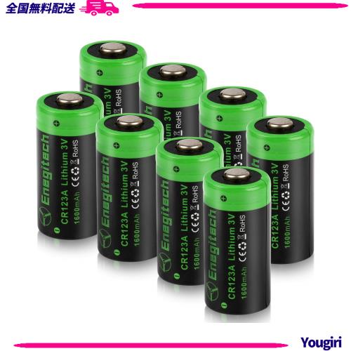 Enegitech CR123A リチウム 電池 123A 3V バッテリー 1600mAh キュリオロック カメラ ビデオ 懐中電灯用 非充電式 (CR123A 8個)