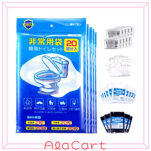 【セット内容*安心サポート】◆1箱内容:汚物袋×20枚、防臭袋×2枚、凝固剤×20袋、使い捨て手袋×20セット、取扱説明書×1枚。備えあれば憂いなし!緊急時に便利な簡易トイレは、急な断水工事でトイレが使用不能になったり、地震や台風のような災害時に役立ちます。防災グッズとして備えておくことで安心です。携帯トイレは介護やケガの際、すぐにトイレに行けない場合でも役立ちます。