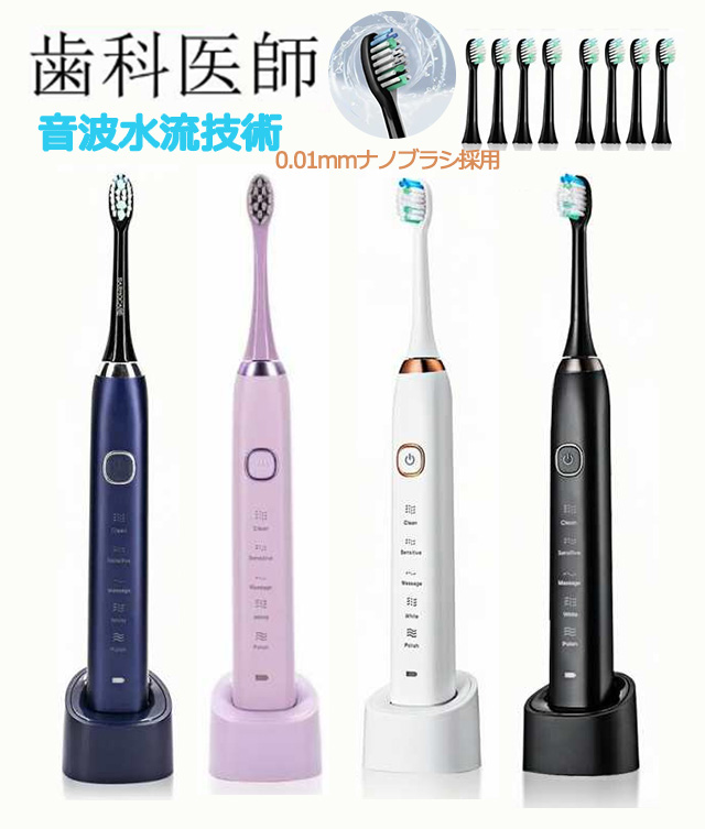 電動歯ブラシ 音波歯ブラシ 歯ブラシ 電動 替えブラシ8本付き 電動ハブラシ 電動音波歯ブラシ 口腔洗浄器 超音波歯ブラシ 超音波振動歯ブラシ 防水 5段階モード 歯石 歯垢 口臭 歯石 虫歯予防 歯磨き ナノ歯ブラシ 誕生日 ギフト