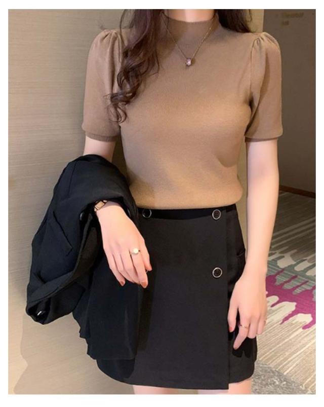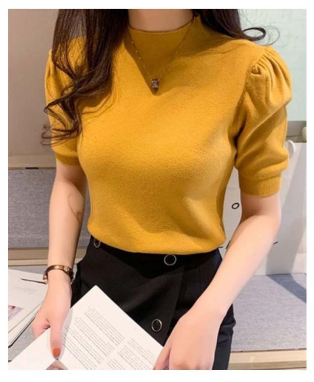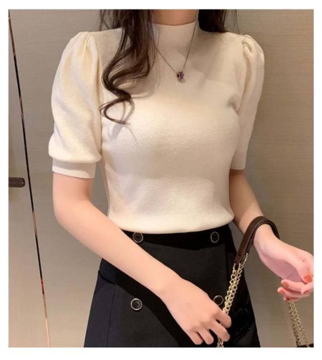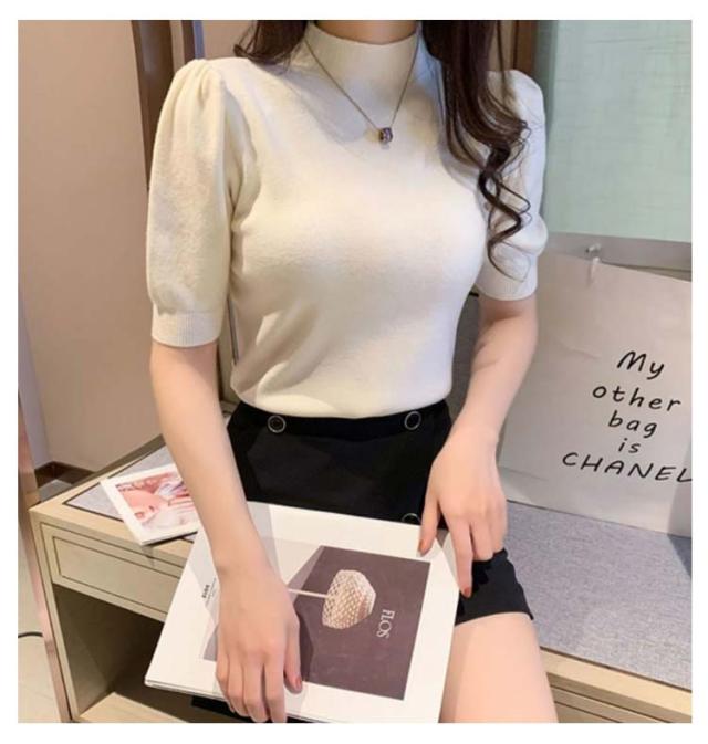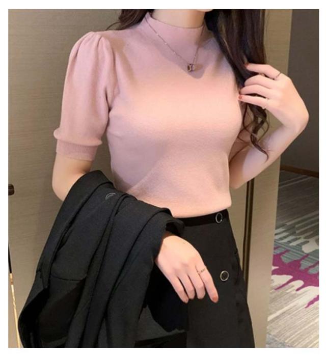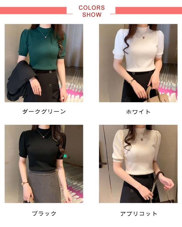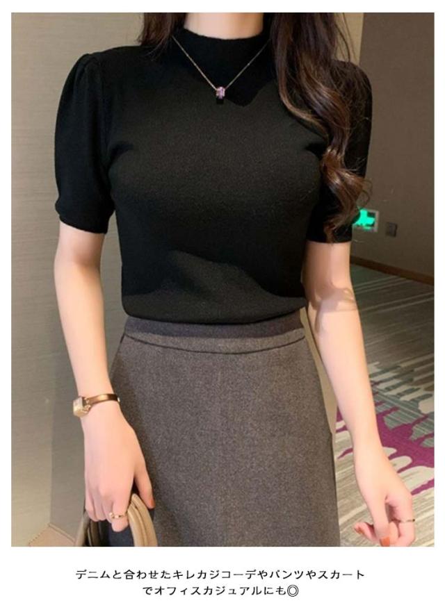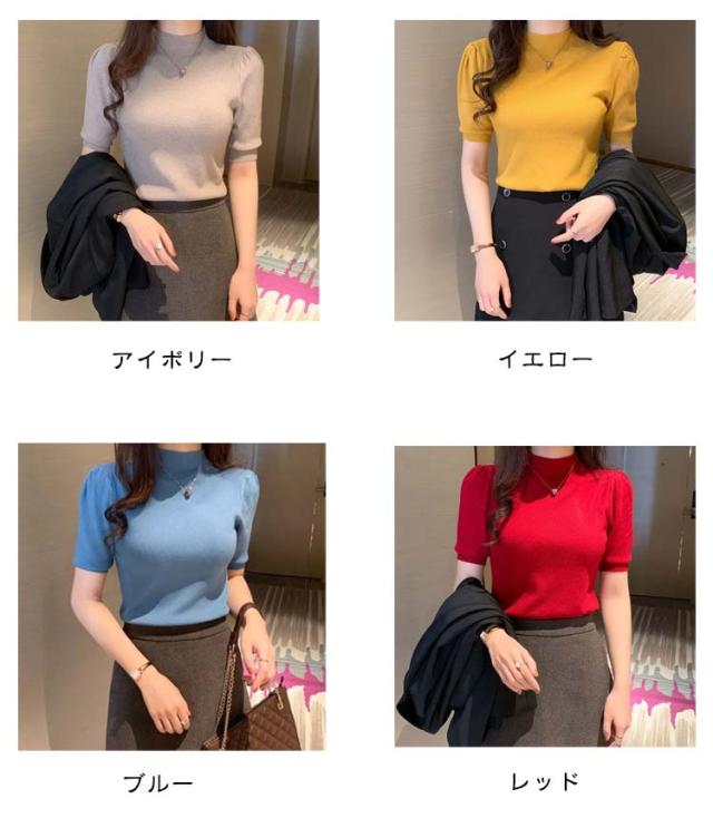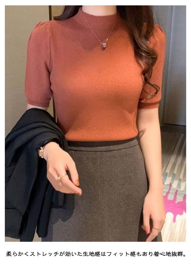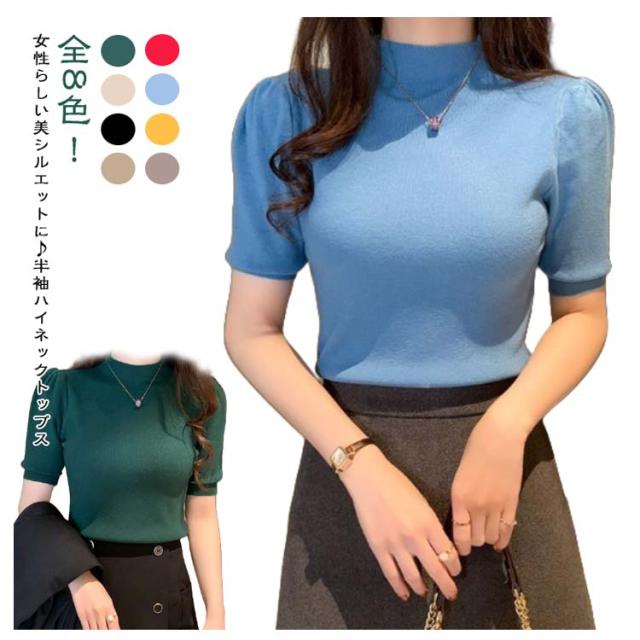 ハイネック サマーニット 半袖 レディース 薄手 リブニット 半袖ニット 春服 トップス 半袖トップス ハイネックニット 重ね着 かわいい 無地 大人 女性 伸縮性 春トップス ニットトップス 春 夏 シンプル カジュアル きれいめ 送料無料
