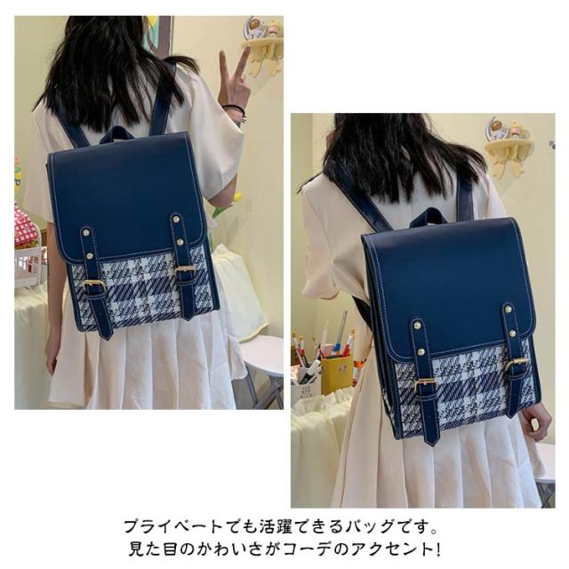 | 軽量 バックパック 通勤・通学・遠足 プライベートでも活躍できるバッグです。見た目のかわいさがコーデのアクセント! おしゃれでかわいらしいバックパックー。 制服にもぴったり? 普段使いでもカバンがコーデを引き立たせてくれる! コンパクトなのに収納力◎ 細かい物・大きな物と分けて入れることが可能IPadも入るので通学の際にも活用できます! 見た目はコンパクトなのに収納スペースがたくさん! <お勧めポイント> 【多収納】 コンパクトなのに多収納で細かなものを分けたりすることができます。 【普段使いにも◎】 普段使いはもちろんのこと通学・習い事・遠足など幅広く使えるリュックサックです。 【チェックがアクセント】 チェック柄がアクセントになりコーデの1つとしてオススメです!! <details> 調整ベルト ゴールドの金具 磁石のボタン 丁寧に縫われた縫い目 | |
