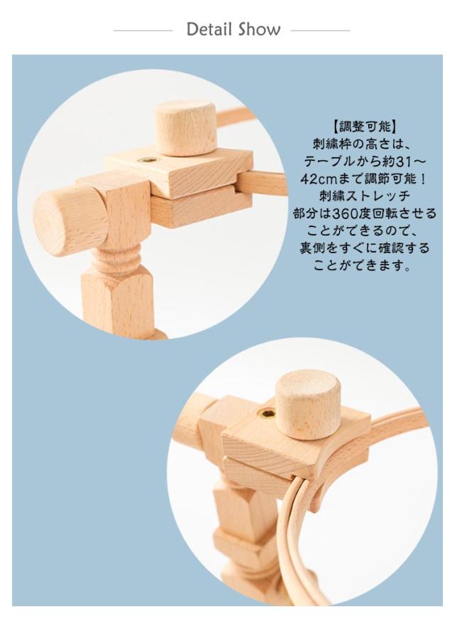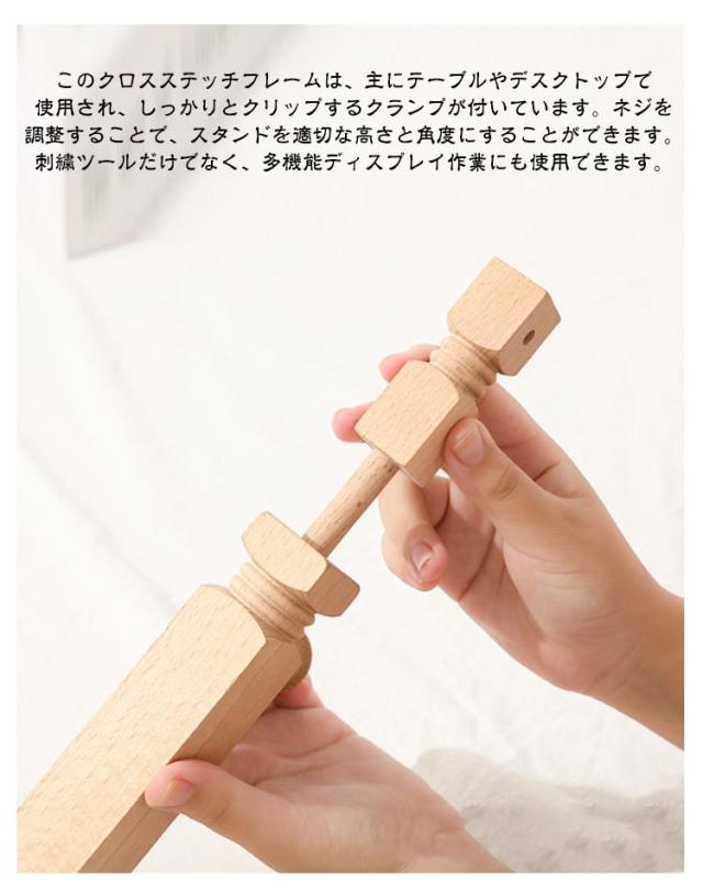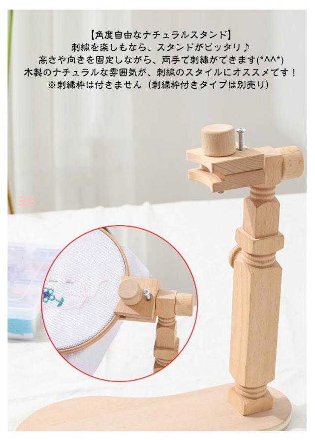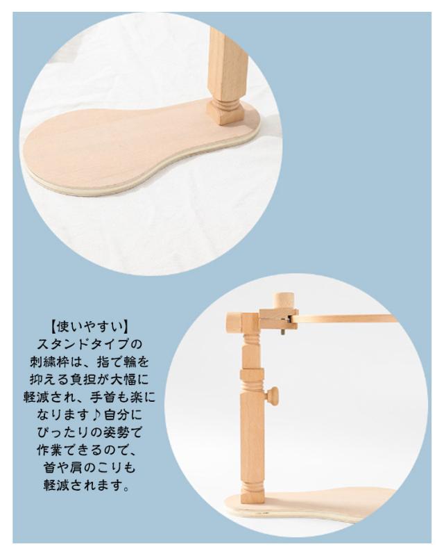 | 360 回転・高さ調節可能 かんたん組立式・収納にも便利 木製刺繍枠スタンド 2タイプ 直径15cm&20cm刺繍枠付き 【角度自由なナチュラルスタンド】 刺繍を楽しもなら、スタンドがピッタリ♪ 高さや向きを固定しながら、両手で刺繍ができます(*^^*) 木製のナチュラルな雰囲気が、刺繍のスタイルにオススメです! ※刺繍枠は付きません(刺繍枠付きタイプは別売り) フープスタンドは高品質のブナ材でできており、頑丈で耐久性があります。組み立てが簡単で持ち運びも簡単(刺繍枠は不可) 間隔は自由に調整でき。円形、正方形、またはさまざまな形状の刺繍フープに適しています。 このクロスステッチフレームは、主にテーブルやデスクトップで使用され、しっかりとクリップするクランプが付いています。ネジを調整することで、スタンドを適切な高さと角度にすることができます。 刺繍ツールだけでなく、多機能ディスプレイ作業にも使用できます。 <お勧めポイント> 【精巧な作り】 使用される素材は、軽くて厳選された天然のブナで、表面は滑らかで毛がなく、柔らかく繊細。 【使いやすい】 スタンドタイプの刺繍枠は、指で輪を抑える負担が大幅に軽減され、手首も楽になります♪自分にぴったりの姿勢で作業できるので、首や肩のこりも軽減されます。 【調整可能】 刺繍枠の高さは、テーブルから約31〜42cmまで調節可能!刺繍ストレッチ部分は360度回転させることができるので、裏側をすぐに確認することができます。 【ギフトに最適】 DIYや手仕事が好きな友人、家族、恋人への素晴らしい贈り物になります。木製刺繍台は、刺繍愛好家に最適です。 【 持ち運びに便利】 どこでも刺繍できる刺繍スタンドホルダーは、スペースをとらず、自由に移動でき、テーブルや脚に置くことができます。 | |