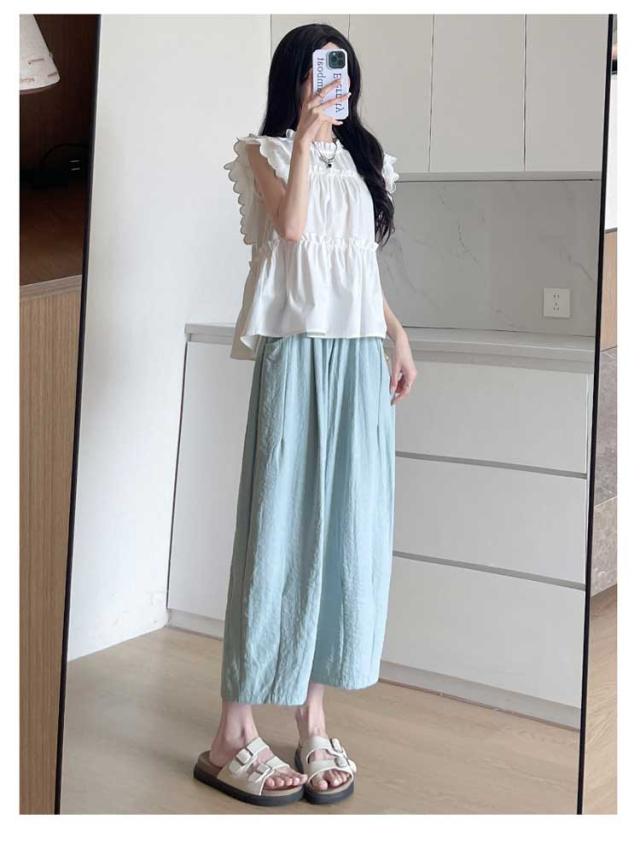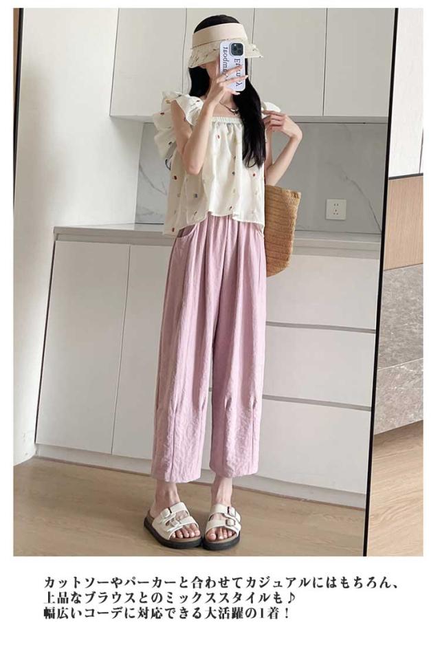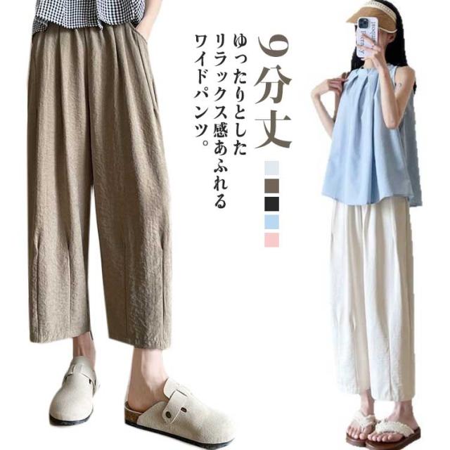 9分丈 送料無料 ワイド ワイドパンツ 体型カバー レディース バルーンパンツ ロングパンツ ゆったり 大きいサイズ サルエルパンツ ルーズ 綿混 送料無料 無地 カジュアル ナチュラル リラックス