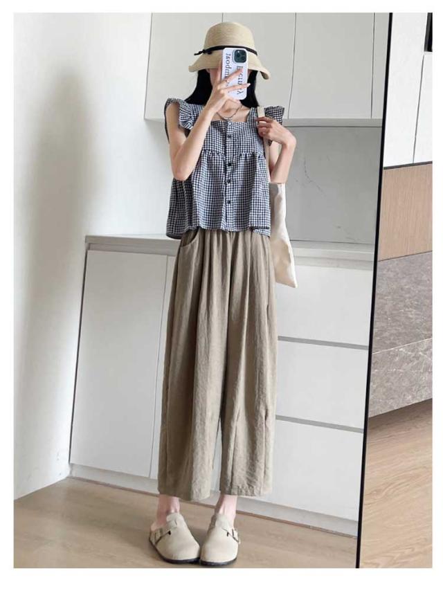 | ワイドなボリューム感とテーパードのすっきり感をミックスしたバルーンシルエットのパンツ。 裾にダーツを入れた、少し絞ったようなフォルム。ルーズ過ぎないけれど、ゆるっとしたシルエットが可愛い。 綿のやわらかな履き心地でストレスフリーで快適にすごせます♪ 脚長効果も期待できるハイウエストデザイン。 クロップド丈で抜け感のある爽やかさな一枚です。 普段のお出かけはもちろん、お家でのリラックスタイムにもオススメ。ウエストはゴム仕様。 あらゆるトップスとのコーデもバランス良くきまりま♪ | |