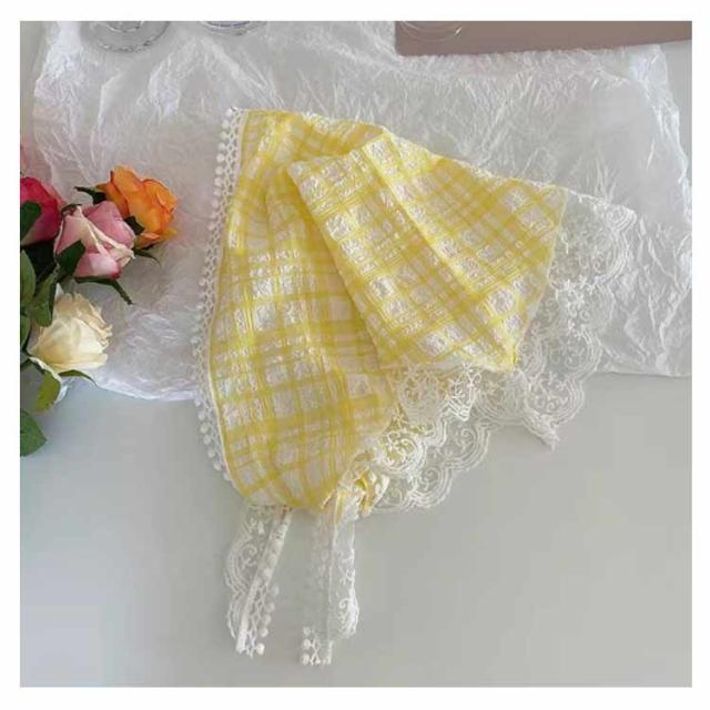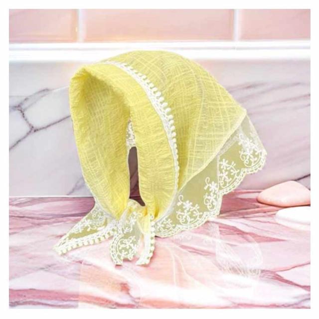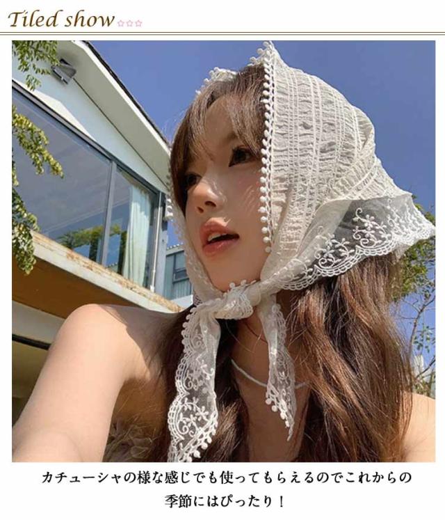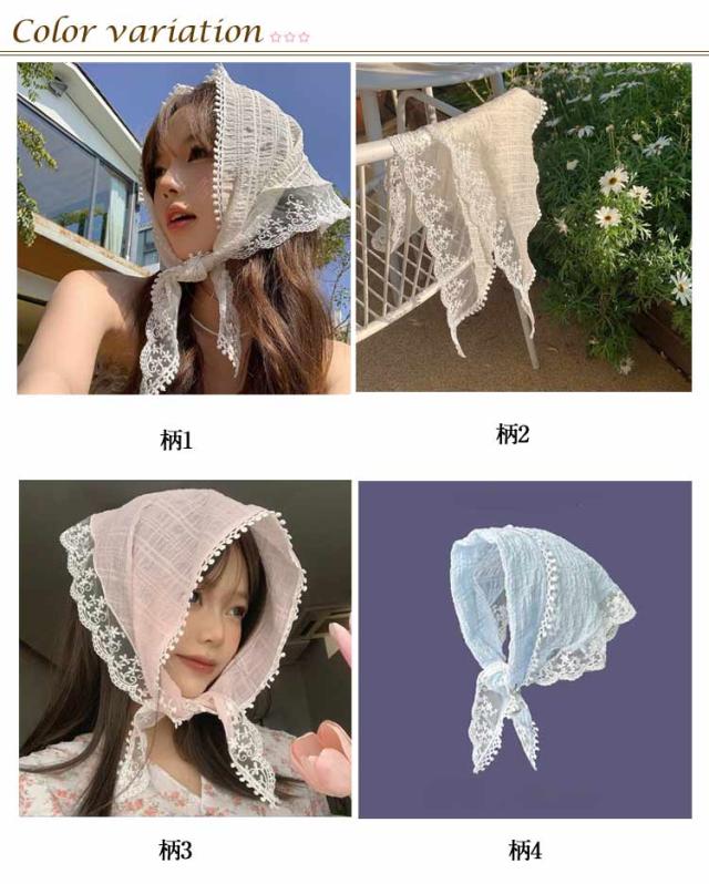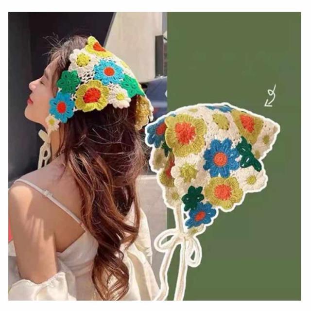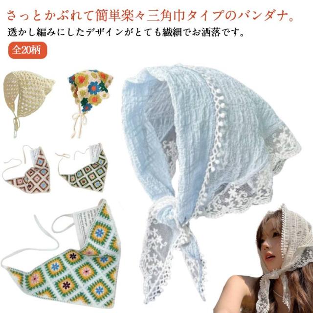 | さっとかぶれて簡単楽々三角巾タイプのバンダナ。 透かし編みにしたデザインがとても繊細でお洒落です。 カチューシャの様な感じでも使ってもらえるのでこれからの季節にはぴったり! フランスのレトロな美しさを醸し出し、夏の服装に優雅さを加えるのに最適です。 コンパクトになりますので持ち運びにも便利。 | |