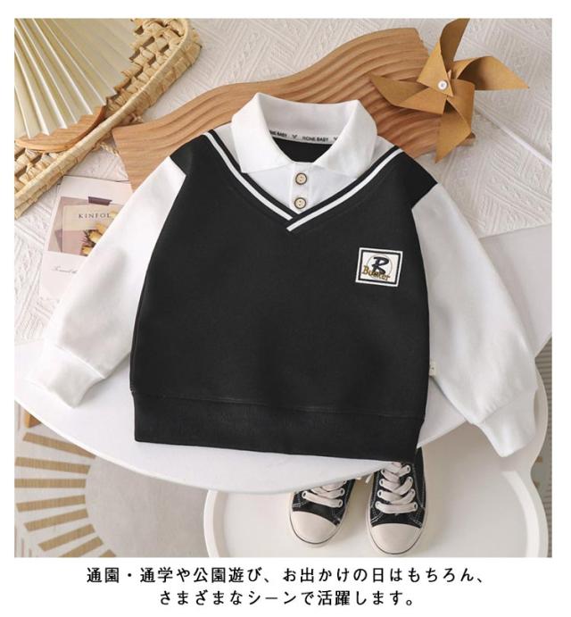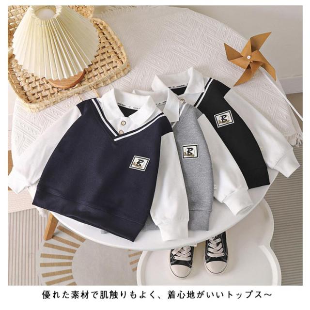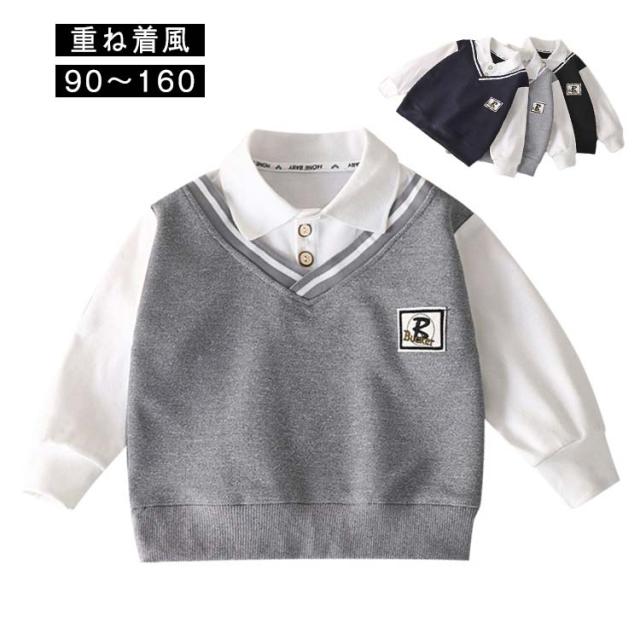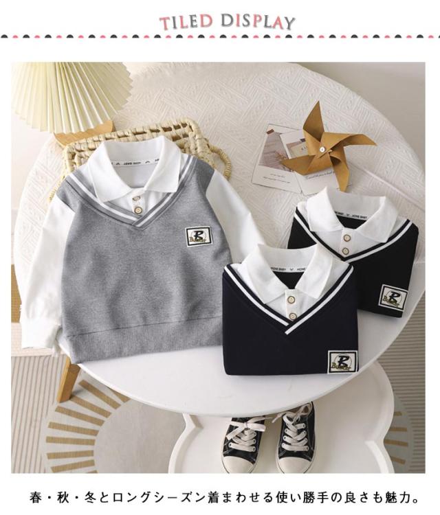 トレーナー 男の子 子供服 フォーマル レイヤード風 ポロシャツ ジュニア 幼稚園 春 トップス 100 重ね着風 キッズ スウェット 小学生 長袖 シャツ ベビー 保育園 おしゃれ 入学式 90 男の子 110 120 130 140 150