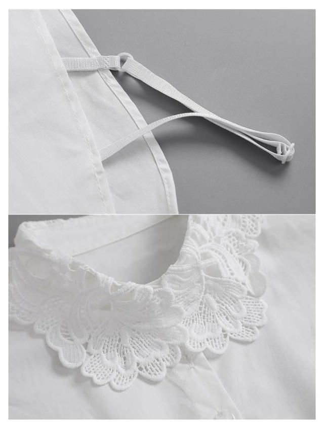 | 【美的なレースのつけ襟】【2color】【5種類】 レイヤードしているかのように見えるシャツ風付け襟♪ 女性らしいフリルデザインが上品にかわいく仕上げてくれます。 フロントのボタン使いがアクセント。 アジャスター付きの脇ひもで、ずれにくく調節もラクラク。 着ぶくれせず、手軽にレイヤードスタイルが完成♪ トップスの中にプラスするだけで印象ガラっと早変わり! | |