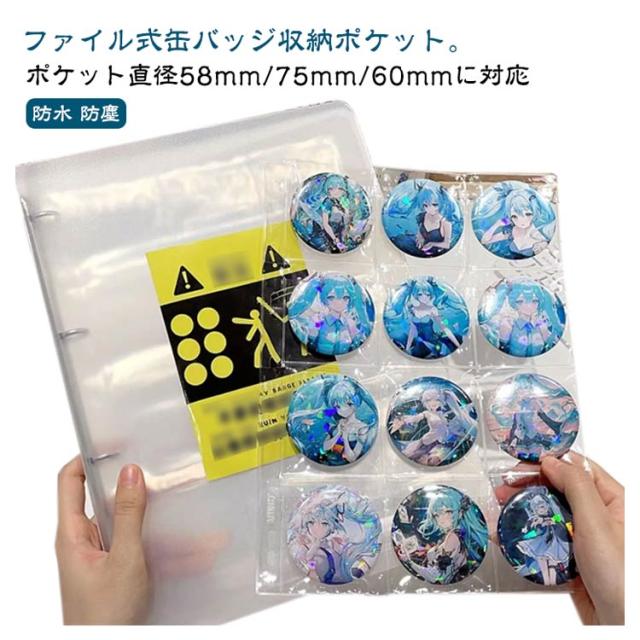 缶バッチ A4サイズ ファイル 缶バッジカバー 収納 ディスプレイ 大容量 コレクション アルバム 缶バッジ 缶バッジ 収納ファイル ブック バインダー アクリルキーホルダー PVC 防水 防塵 防ほこり キズ防止 直径58mm/75mm/60mm コレクションケース