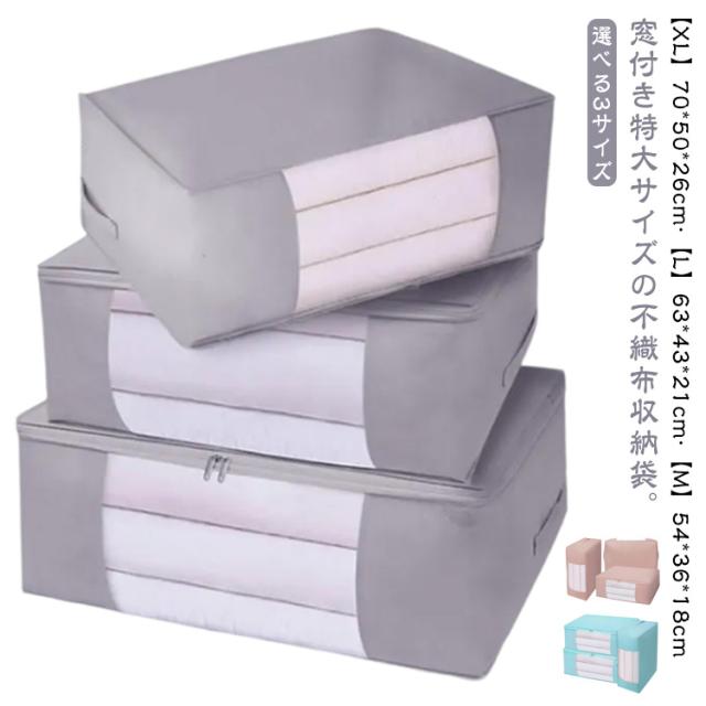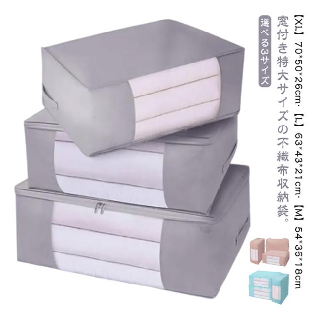 | 窓付き特大サイズの不織布収納袋。【XL】70*50*26cm?【L】63*43*21cm?【M】54*36*18cm 【簡単くるくる丸めて入れるだけ】くるくると丸めて入れるだけ。簡単にスッキリ収納。 【取っ手】取っ手が付いているので、持ち運びや取出しも楽ちん。 【窓付き】窓付きで中に何を入れたか一目瞭然。通気性もUPします。 【折りたたむと手のひらサイズに】:使わないときは折りたたんでコンパクトに収納可能。 【立てたり積み重ねたりして保管】:クローゼットや押入れに立てて並べたり、積み重ねたりして保管できる。 【選べる3サイズ】布団のサイズや量によってお好みのサイズをお選びいただけます。 | |