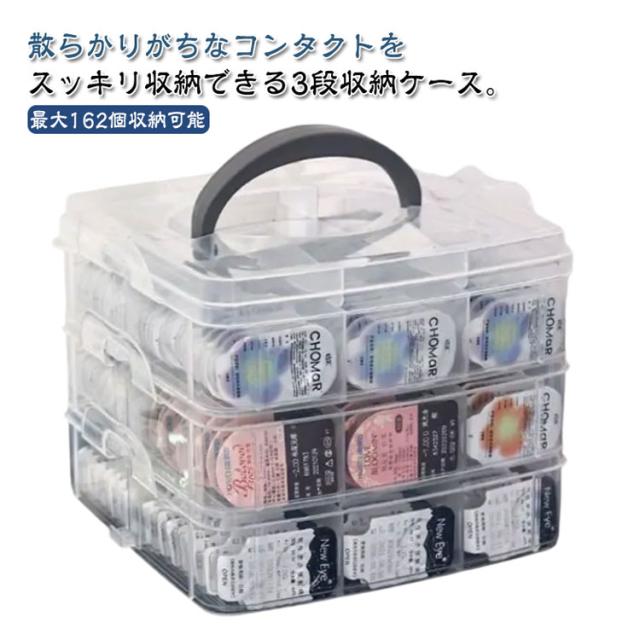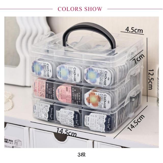 仕切り コンタクトケース 透明 カラコン 3段 蓋付き ワンデー ケース 収納ケース クリア 小物入れ 小物収納 アクセサリー 収納 コンタクト収納ケース コンタクト収納ケース 大容量 収納ボックス 使い捨てコンタクトレンズ収納 持ち運び 持ち手付き インテリア 雑貨