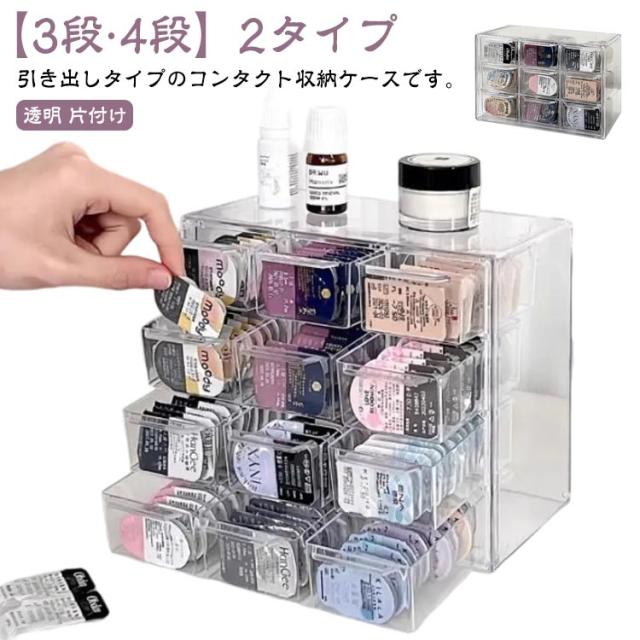 | 引き出しタイプのコンタクト収納ケースです。【3段?4段】2タイプ 収納力抜群な上にで、クリアタイプなのでストックの数も一目でわかるのでとても便利です。 シンプルなデザインでどんなインテリアにも合わせやすく、お部屋に馴染みます。 キッチン、バスルーム、デスク周りなど、さまざまな場所で活躍する多機能なケースでコンタクトはもちろん、メイク道具などの小物の整理にも役立ちます。 散らかりがちなコンタクトをスッキリ収納できる収納ケースです。 | |