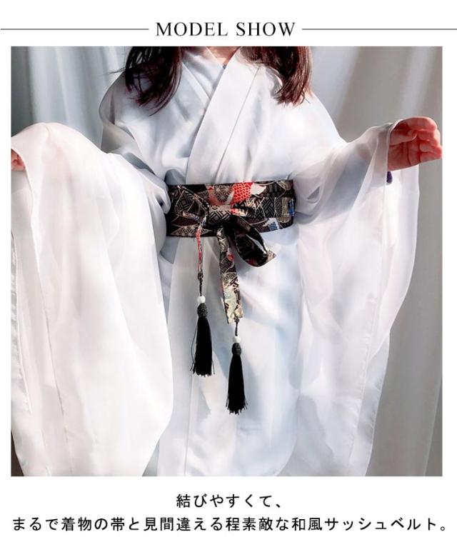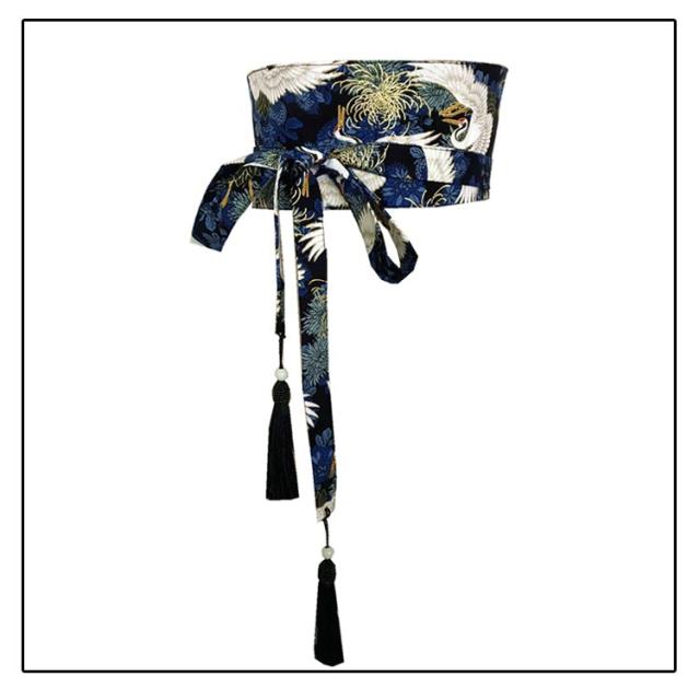 サッシュベルト 和風 コルセット 浴衣 太ベルト 鶴柄 和柄 着物 お洒落 浴衣帯 大人 着物 ハイウエスト ウエストベルト レディース ウエストマーク 洗える フリンジ サッシュベルト 幅広