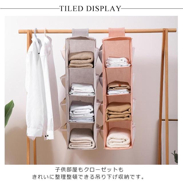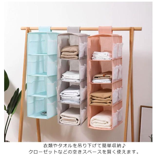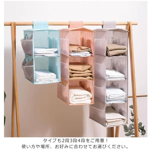 防湿 収納棚 3段 オックスフォード生地 防カビ 吊り下げ収納 2段 4段 ハンガー クローゼット 折りたたみ 収納ボックス 衣類収納 水洗い可能 収納ケース 吊り下げ収納 タオル マスク ズボン シャツ 下着 取り付け簡単