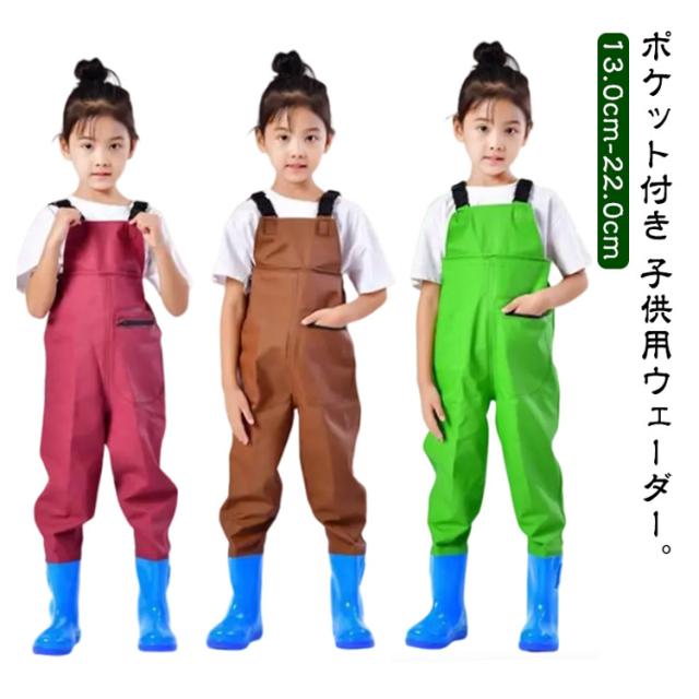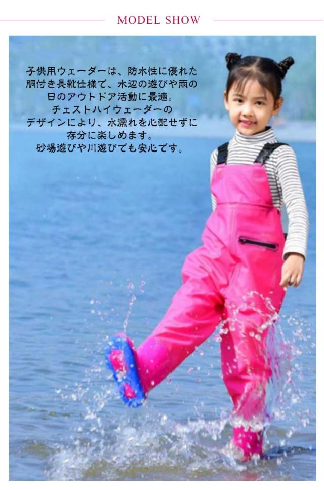 ウェーダー 遊び 長靴付き 潮干狩り 川 女の子 胴長 ウェーダー チェストハイウェーダー オールインワン レインパンツ プレイウェア 水遊び 胴付き長靴 海 田んぼ 男の子 防水 軽量 お砂場着 釣り 収納ポケット付き 雨の日 梅雨 通学 雨具 ウェーダー 長靴一体型