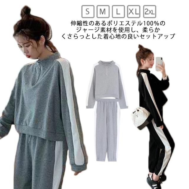 ハーフジップ 長袖 スウェット パンツ セットアップ ジャージ スリム 上下セット プルオーバー 無地 ジム 運動 レディース 春 おしゃれ カジュアル ルームウェア リラックス ジムウェア パジャマ ランニング 薄手 ヨガウェア お洒落 スウェット 夏 秋 冬