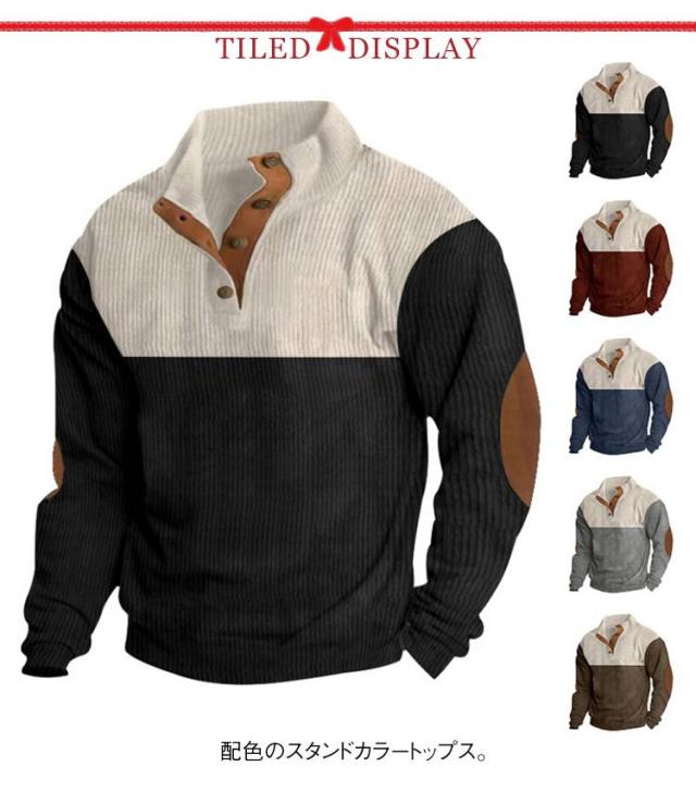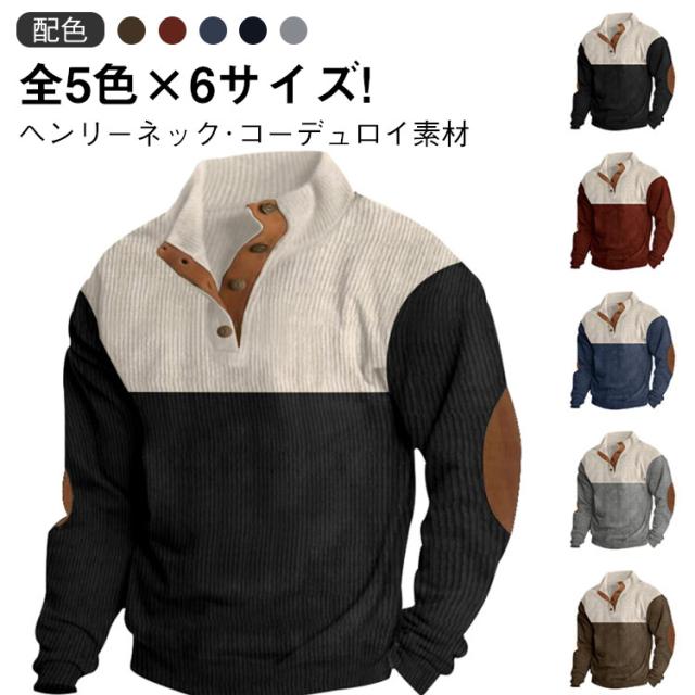 トップス 春服 プルオーバー スポーツウエア パーカー メンズ おしゃれ ヘンリーネック 立ち襟 ゴルフ コーデュロイ コーデュロイ 大きサイズ 30代 40代 スタンドカラー 春 秋