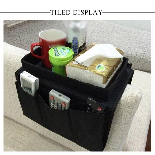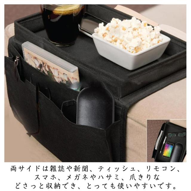 ファアームレストバッグ ソファポケット トレイ付き ソファ肘置き掛け袋 ソファーサイド収納袋 ベッドサイドバッグ 収納袋 ソファーサイドバッグ 5ポケット 収納力抜群 スマホ 雑誌 小物入れ