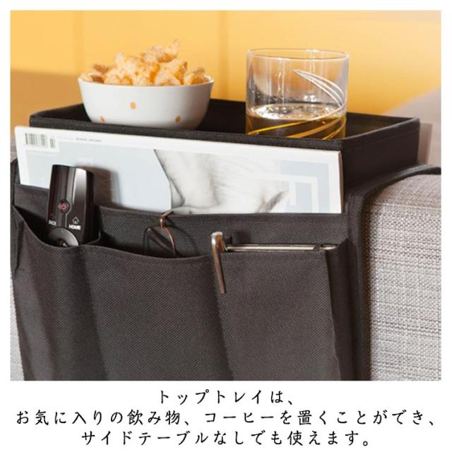 | トレイ付き、収納力抜群のソファサイド収納ポケット。 両サイドは雑誌や新聞、ティッシュ、リモコン、スマホ、メガネやハサミ、爪きりなどさっと収納でき、とっても使いやすいです。 トップトレイは、お気に入りの飲み物、コーヒーを置くことができ、サイドテーブルなしでも使えます。 高品質の600Dオックスフォード生地素材を採用された頑丈な作りです。 使い方簡単で、ソファ、ベッド、机などの横に吊り下げるだけでお使えます。リビングや寝室で散らばりやすい小物類をスッキリ収納! | |