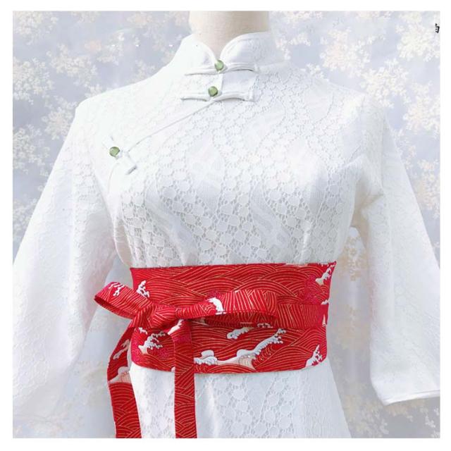 ワンピース 桜柄 チュニック コルセット レディース 和風ベルト 鶴柄 サッシュベルト 太めベルト ハイウエスト ウエストマーク 和柄 着物 和風 お洒落 フリンジ 和装小物 女性用 浴衣