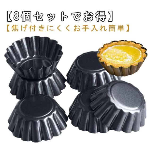 裏地付き型 ケーキ型 耐熱 家庭用 お菓子用 繰り返し使え ケーキ型 カップケーキ ミニパイ型 円形 製菓用品 タルト型 耐油 炭素鋼 ベーキングツール 8個セット お菓子用 キッチン用品 エッグタルト型 クッキー 粘りにくい