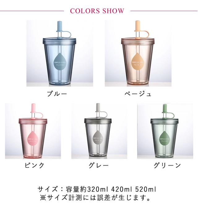 2層構造 携帯用 ストローカバー付き 漏れない カップ 大容量 コップ おしゃれ ストロータンブラー 蓋付き 透明 ストロー 再利用可能 420ml 320ml ストロータンブラー 520ml コーヒーカップ 直飲み 透明ストロー マグカップ コーヒー ジュース シンプル 男女兼用