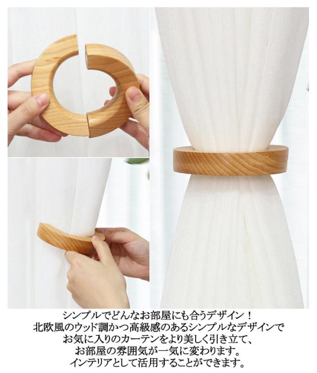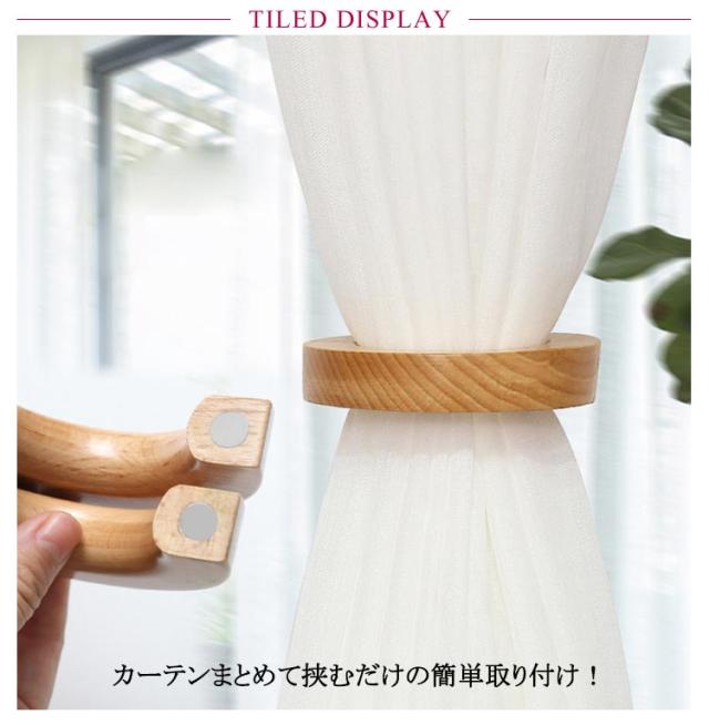 【2個セット】 カーテン ネクタイ タッセル マグネット 木製 おしゃれ 留め具 カーテン止め カーテンホルダー 北欧 カーテンタッセル カーテン バッグ ハンガー タオルハンガー ウッドリング アクセサリー カーテン留め 天然木 【2個セット】 インテリア