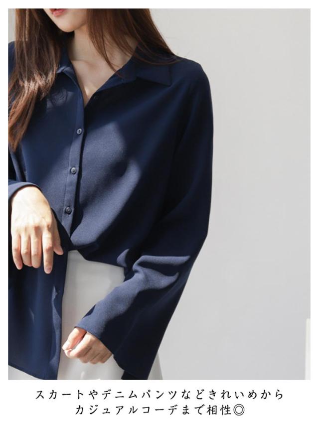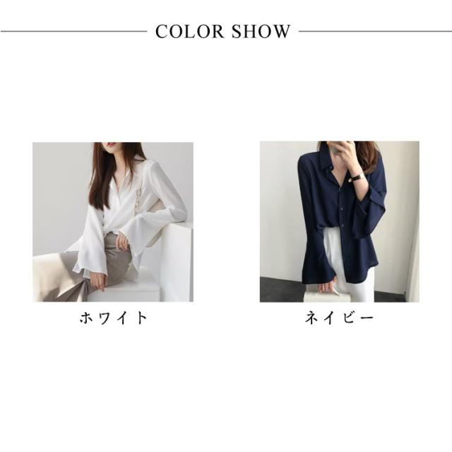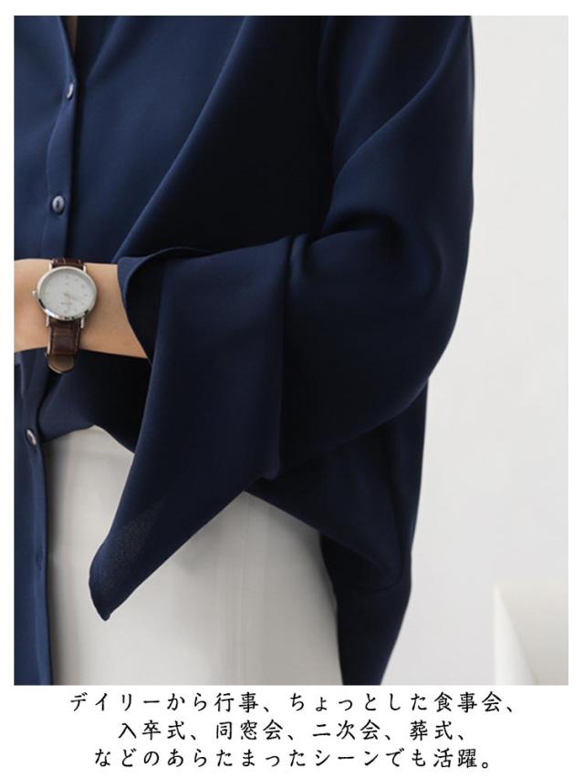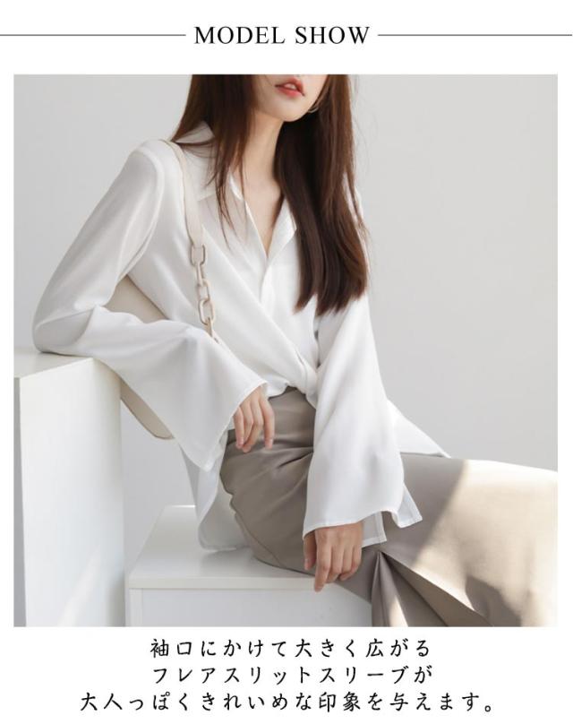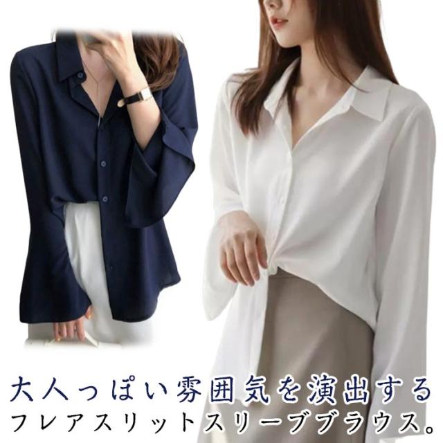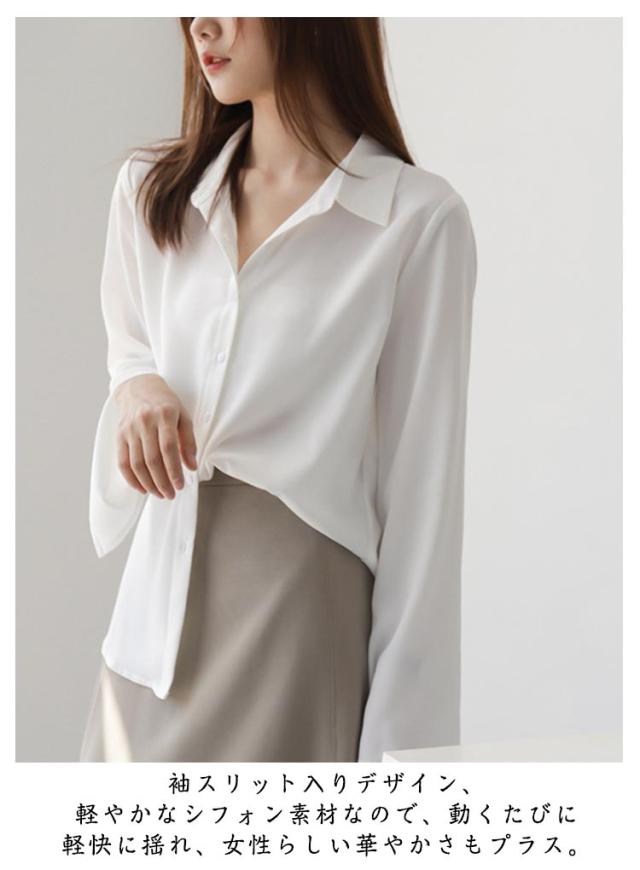 スリットスリーブ フレアスリーブ レディース シャツブラウス ブラウス 大人 ブラウス シフォンブラウス 体型カバー きれいめ 長袖 オフィスカジュアル とろみ 袖スリット 袖フレア 通勤 デート袖口開き