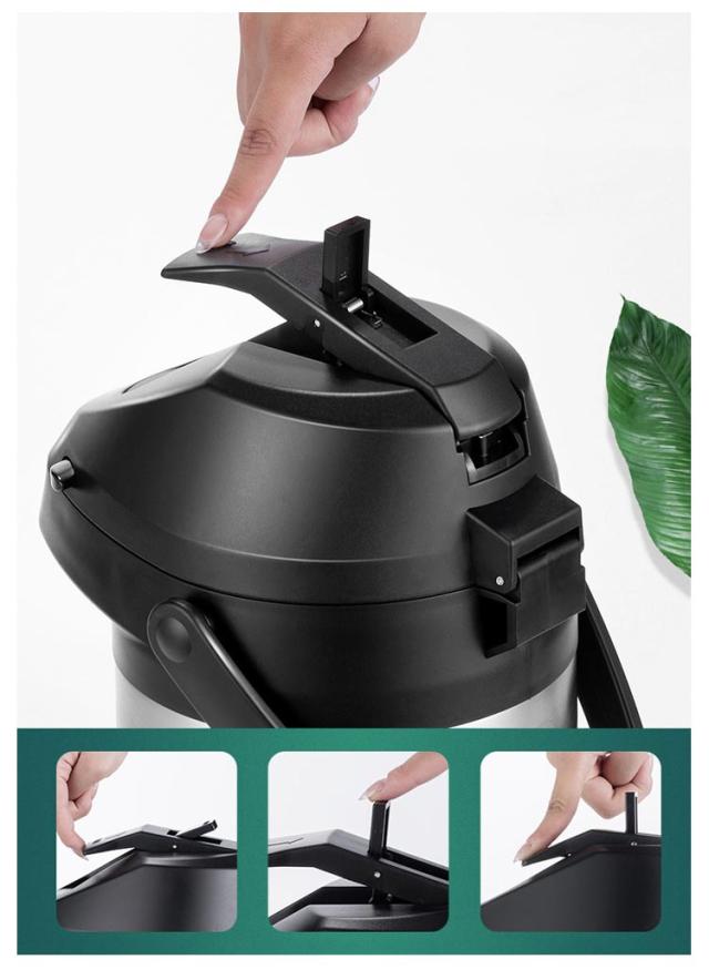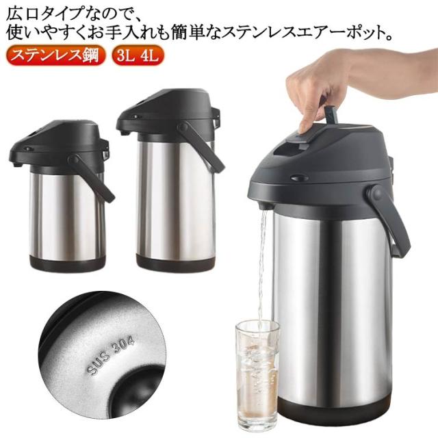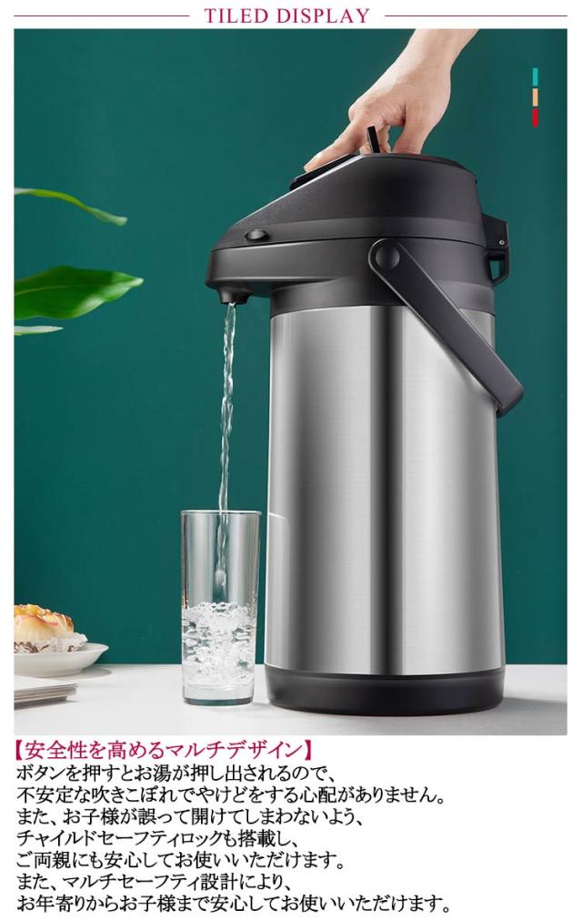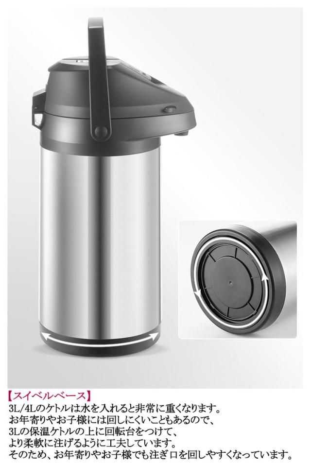 魔法瓶 まほうびん 押す 保温ポット エアーポット 大容量 水たまり防止設計 4L ステンレスエアーポット 保温保冷 熱湯 3L エアー式給湯 360°底回転 魔法瓶 安全ロック設計 卓上ポット 360°回転ベース ステンレス 手持ち付き 持ち運び便利 卓上 保温