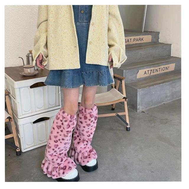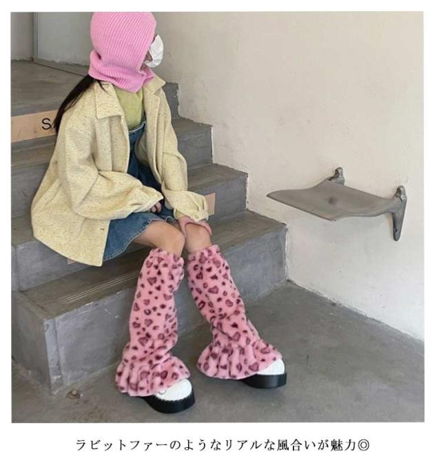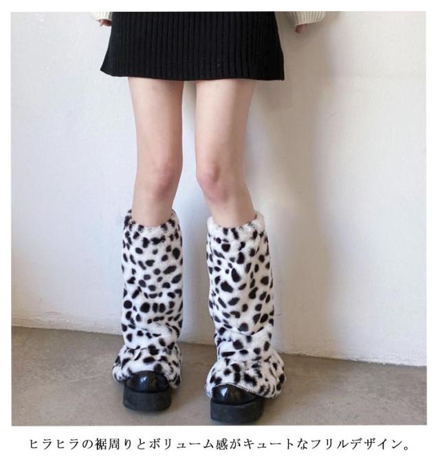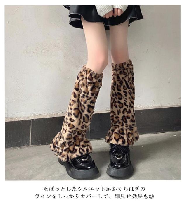 フェイクファー 2足入り レッグウォーマー ラビットファー ルーズソックス 靴下 レオパード柄ファーレッグウォーマー レオパード柄 ヒョウ柄 フリル ミニスカート Y2Kファッション 韓国ファッション
