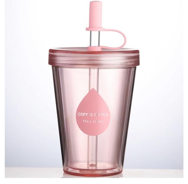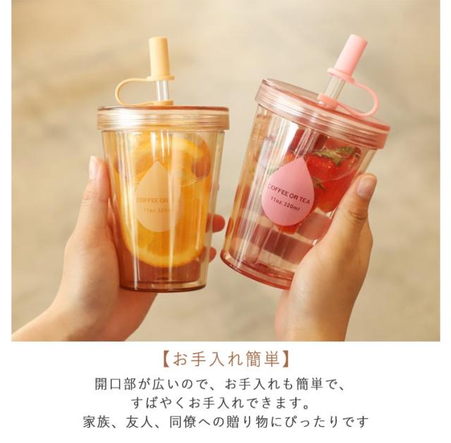 ストローカバー付き 蓋付き 2層構造 漏れ防止 ストロータンブラー 420ml 520ml 320ml おしゃれ 透明 ストロータンブラー ストロー コップ 再利用可能 大容量 携帯用 カップ コーヒーカップ 直飲み 透明ストロー マグカップ コーヒー ジュース シンプル 男女兼用
