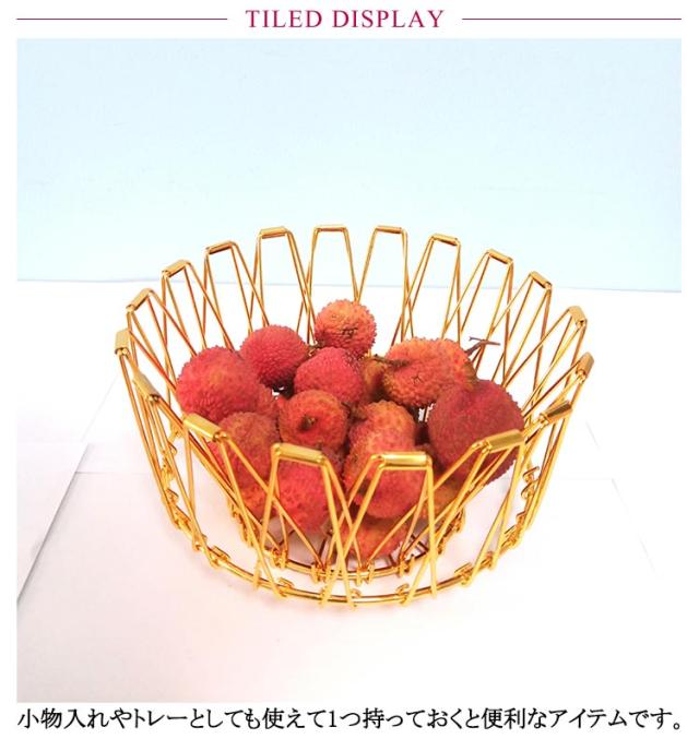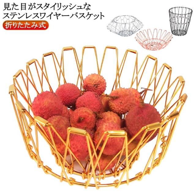 フルーツバスケット ワイヤーバスケット バスケット ステンレスバスケット ワイヤー フルーツ 金 収納バスケット ステンレス ステンレスバスケット 小物入れ 銀 ワイヤーボウル おしゃれ 丸型 折りたたみ式 黒 ディスプレイ 鍋敷き 北欧 雑貨 スチール