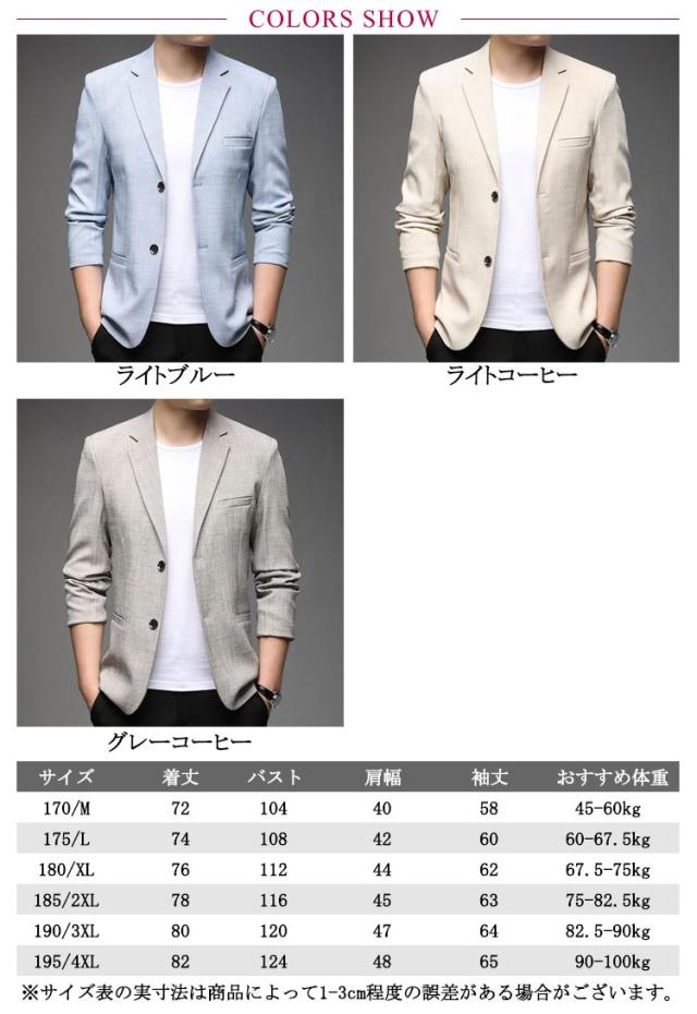 ブレザー スーツ 春夏用 テーラードジャケット サマージャケット 長袖 ジャケット 通気 テーラードジャケット ライトアウター 紳士服 羽織 春服 アウター ビジネス 男性 涼しい 大きいサイズ カジュアル 薄手 無地 夏 秋服 送料無料 40代 50代 60代 父の日 プレゼント ギフト