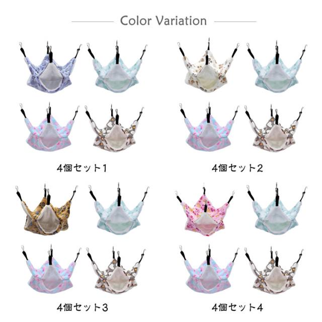 | 一年中使えるハンモック! 小動物ハンモック【4個セット】 12種類×3サイズ:20×20cm 30×30cm 35×35cm ほわっほわな手触り小動物用ハンモック 柔らかい、中は温かい、寝心地も良いコーラルフリース素材を使用することで手触りだけでなく暖かさも兼ね備えています。 ・コーラルフリース素材 ・手触りがいい ・取り付け簡単なフック 【優良素材】フリース。柔らかなぬいぐるみの裏地付きの居心地の良いぬいぐるみで作られていま。 【二重層のハンモックデザイン】柔らかな生地、中は温かい、寝心地も良い。二重ハンモック ハムスター 小鳥 ケージに掛けるベッド 小動物ベッド ぐっすり眠る 暖かい巣 クッションにも ハンギンング おもちゃ オウム、ハムスター、マウス、スナネズミ、ラットのハンモック 【省スペース】ケージのスペースを取らずに取り付けます小動物用ハウス うさぎ モルモット ハウス ベッド ブランコ ソファ チンチラ デグー 冬用 保温 あったか 寒さ対策。彼らは睡眠や内部再生するための安全で温かいあなたの小さな友人のために設計された理想的な場所。 【対象】ウサギ、フェレット、モルモット、チンチラ 小鳥など小動物。手触りの良いボアを採用し、ふわふわ暖かな感触。ハンモックにゆられてぬくぬく。 【取り付け簡単】ケージに吊し、その中に入って寝ると、ぐっすり寝ています。とっても暖かくて心地よています。ペットに質の高い睡眠環境をぐ作ることができます。 ハムスターやフェレット、モモンガ、シマリスなどの小動物に!フックがついているので、ケージにつり下げることができます。もちろん床置きも可 | |