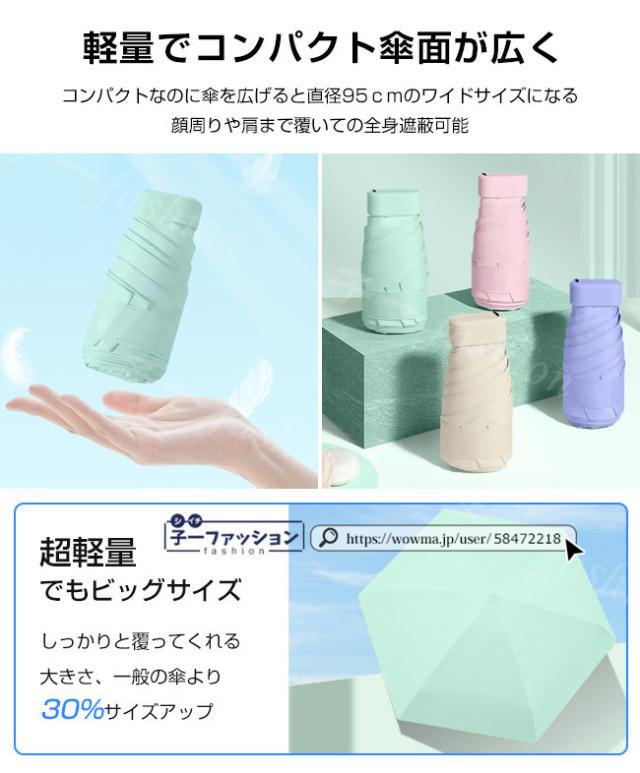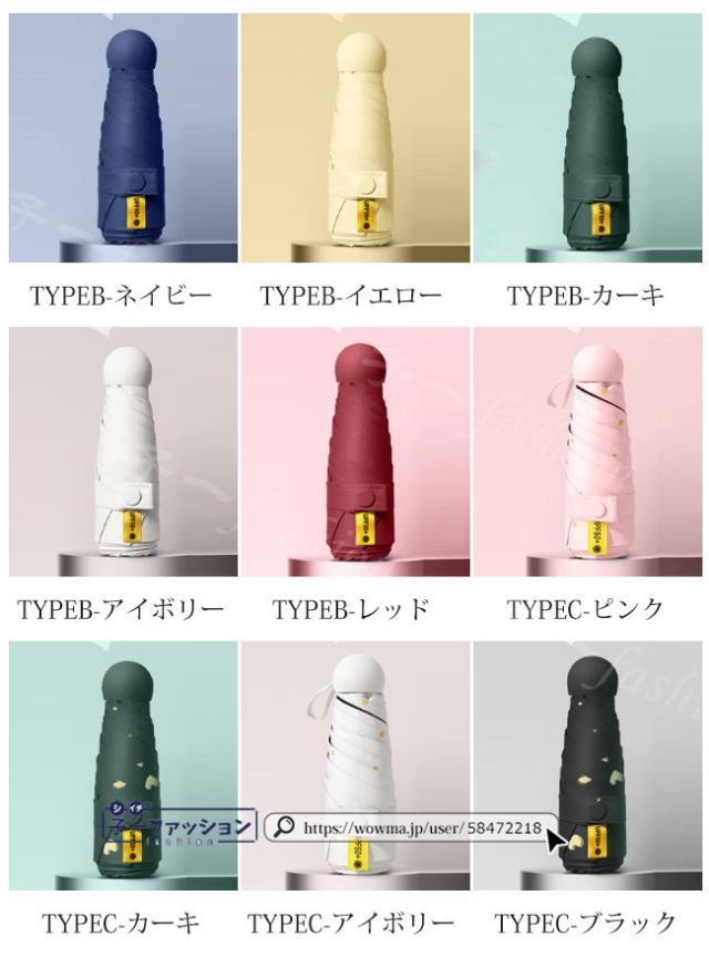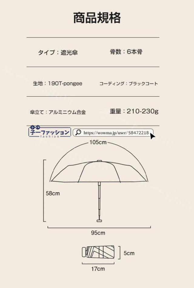 【極軽量6本骨日傘】6本の傘で、TYPEA重さ約210g、TYPEB,TYPEC重さ約230g、折りたたんだ後は17cmと、コンパクトで収納しやすく、簡単にバッグに入れられます。 毎日の通勤などに持ち歩いても、負担をかけずにいつでも簡単に紫外線対策ができます。