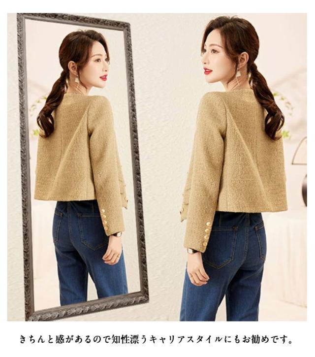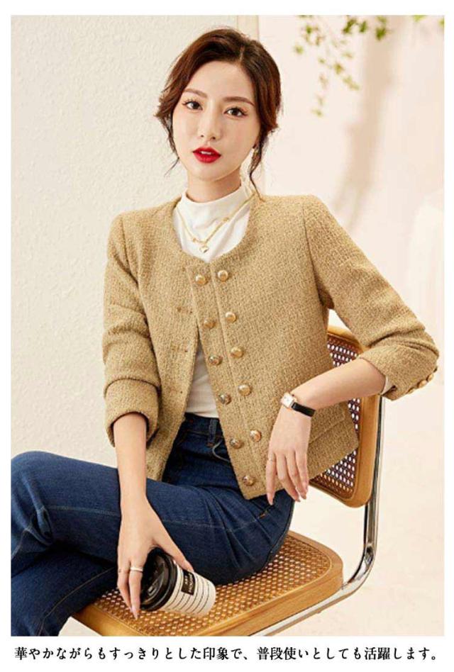 ジャケット 30代 春 秋 ノーカラージャケット きれいめ 冬 ダブルボタン 入学式 20代 フォーマル ジャケット 40代 50代 オフィス 卒業式 上品 オフィスカジュアル セレモニー ブラック ベージュ 韓国ファション M L XL 2XL